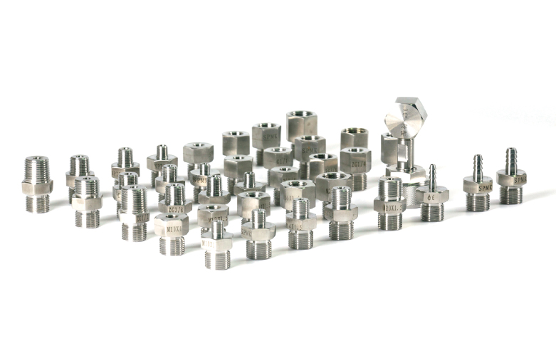 SPMK2000-1萬能儀表轉換接頭:38件。優質不銹鋼制件,以M20×1.5為外螺紋基準不同規格相互轉換,能夠解決多種儀表檢驗使用。