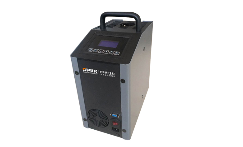 SPMK650便攜式干體溫度校驗爐在同產品中體積小、加溫快、控溫穩定,采用高亮度帶背光大屏幕顯示,操作簡捷、結構堅固、小巧輕便、緊湊且經濟實用,能夠在儀表車間、計量室、校準實驗室中使用,是過程控制儀表的理想校驗儀表。主要校驗溫度元件(熱電偶、鉑電阻、溫度計)、溫度變送器(傳感器)、溫度開關及溫度類儀表。